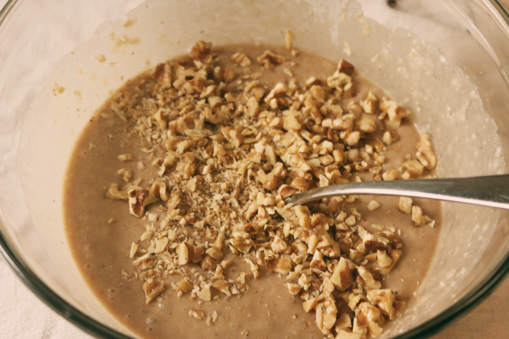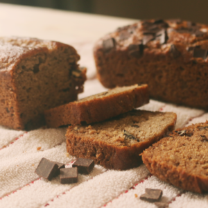 There’s several options for add-ins in your banana bread. Chocolate chips are one common “add-in” ingredient. I usually opt to use them in at least one of my loaves. Nuts are the other common add in. Mix in with chocolate chips or just use nuts.